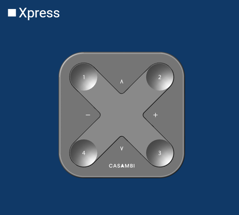 Xpressはワイヤレスのユーザーインターフェースで、スイッチの配線やスイッチの配置を考慮することなく、ユーザーが必要とする場所に置くことができ、CASAMBIの照明制御機能に直接アクセスすることができます。