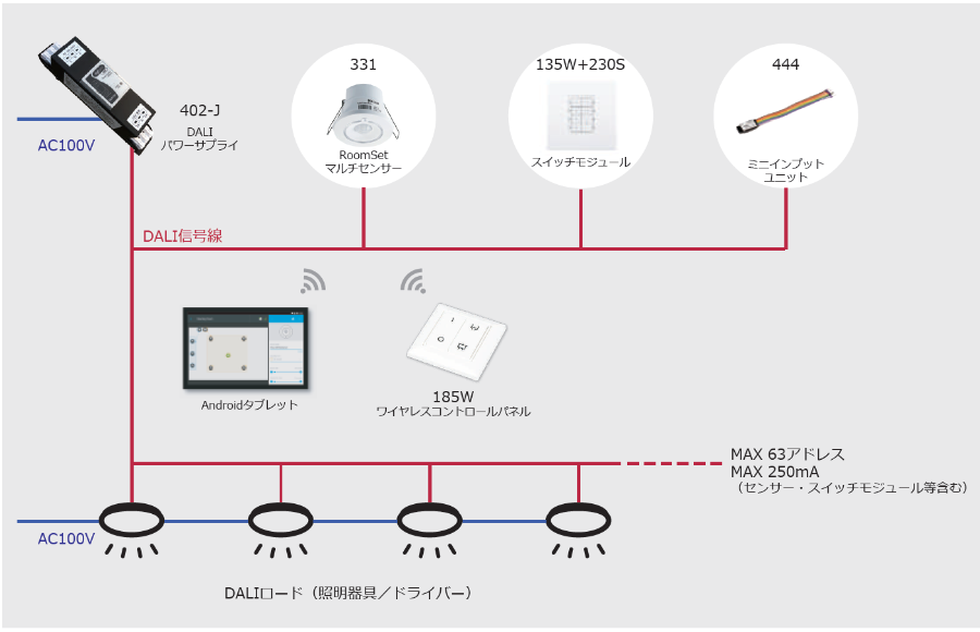 既存のスイッチを使用してBluetooth®対応センサーとDALIパワーサプライの