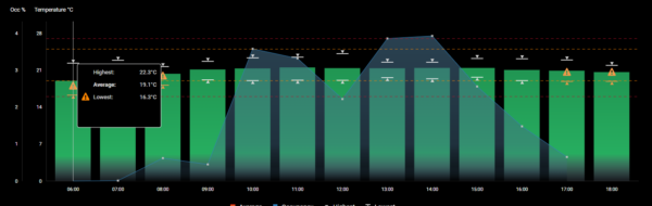 Helvar InsightsはHelvar Sensesのインターフェースであり、さまざまなデバイス(PC、タブレット、スマートフォンなど)を通じて、環境データのリアルタイム表示および過去履歴の確認が可能です。