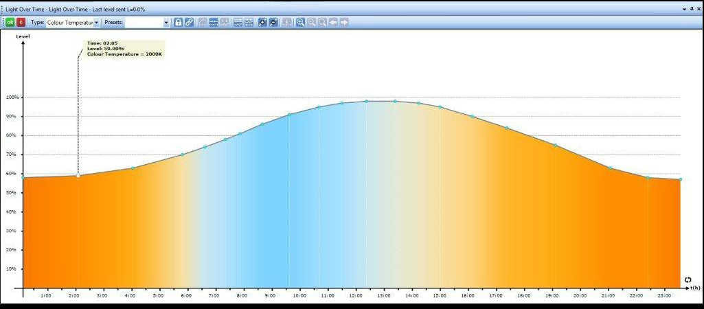 HelvarのLight over Timeソリューションは、特定のアプリケーションやユーザーのニーズを満たすために照明プロファイルを視覚化し、フルカスタマイズすることが可能です。